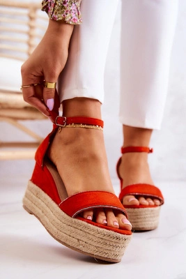 Damskie Sandały Na Koturnie Z Cyrkoniami Pomarańczowe Linette