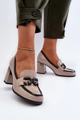 Półbuty Damskie Lakierowane Na Słupku Beżowe Nelione