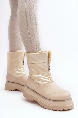 Śniegowce Damskie Na Grubej Podeszwie Z Suwakiem GOE MM2N4079 Beżowe