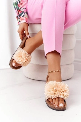 Klapki Na Korkowej Podeszwie Beżowe Flowerbomb