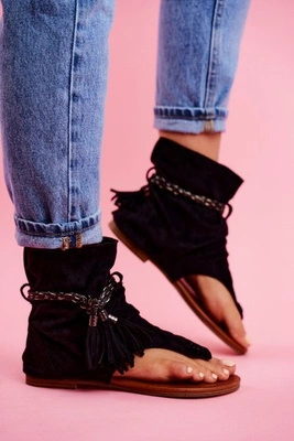 Damskie Sandałki Japonki Z Cholewką Czarne SL1011 Madrit