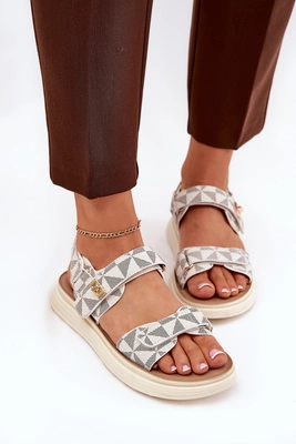 Damskie Sandały Z Ozdobnymi Detalami Na Rzepy Beżowe Zoliner
