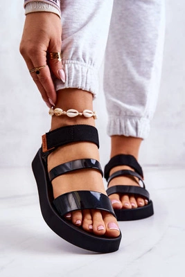 Sandały Damskie Na Koturnie Big Star JJ274937 Czarne