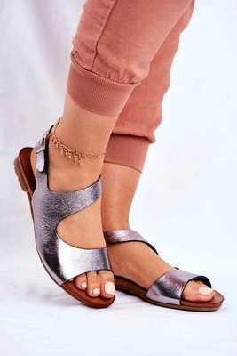 Sandały Damskie Płaskie Srebrne S.Barski Emente