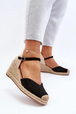 Zamszowe Sandały Espadryle Na Koturnie Z Plecionką Czarne Raylin