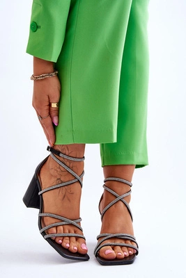 Eleganckie Sandały Z Cyrkoniami Na Obcasie Czarne Laurene