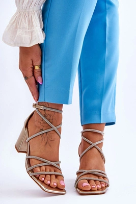 Zamszowe Sandały Na Obcasie Z Cyrkoniami Beżowe Aniya