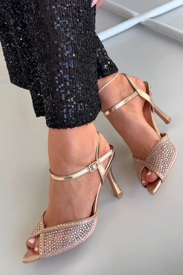 Sandały na obcasie złote - Błyszczący akcent na specjalne okazje