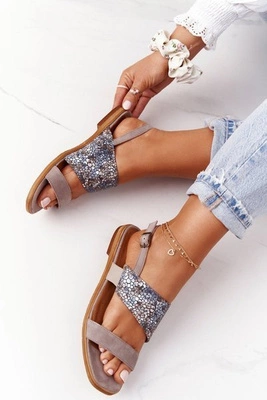 Damskie Zamszowe Sandały Czarno-Srebrne Asturia