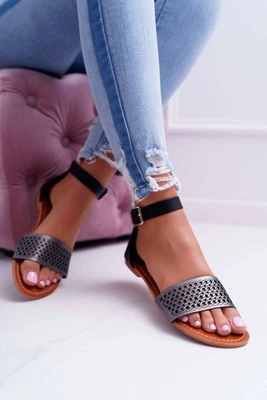 Sandały Damskie Płaskie Czarne Sorsano