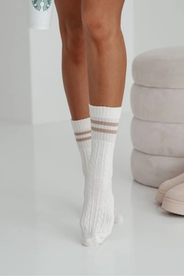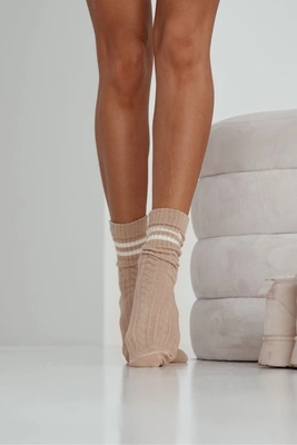 Skarpetki Damskie Warkocz Z Paskami Beżowe