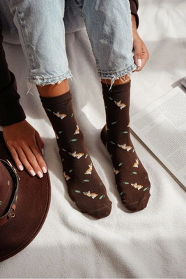 Skarpetki Damskie W Łaty Brązowe