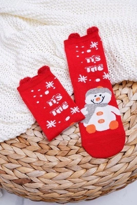 Damskie Skarpetki Świąteczne Czerwone Z Uszami i Bałwankiem