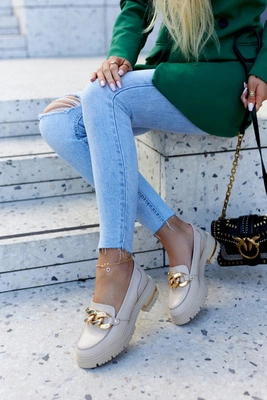 Damskie Skórzane Półbuty Loafery Beżowe Mollie