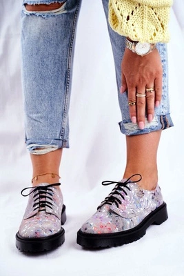 Damskie Półbuty Oxfordy Kwiaty Skórzane Maciejka 04087-43