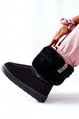 Damskie Botki Śniegowce Ocieplane Futerkiem Big Star Czarne EE274656