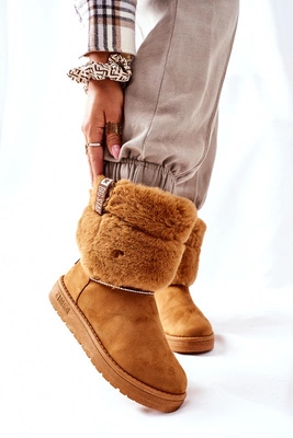 Damskie Ocieplane Botki Śniegowce Zamsz Camel Biggy