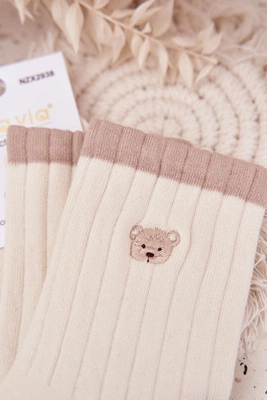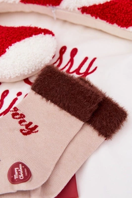 Skarpetki Świąteczne Dziecięce Z Futerkiem I Reniferem Wełna Alpaka Beżowe