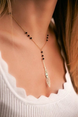 Damski Złoty Naszyjnik Łańcuszek Kwiatek Czarne Kuleczki Cecilia