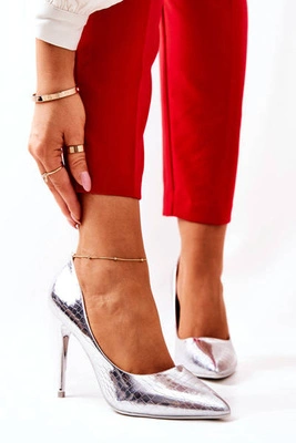 Klasyczne Skórzane Szpilki Jasnoszare Magically
