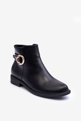 Botki Sztyblety Damskie Na Niskim Obcasie Ze Złotą Klamrą Czarne Vomera