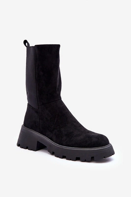 Zamszowe Damskie Botki Na Platformie Czarne Lemar Hilde