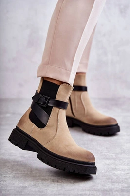 Zamszowe Damskie Botki Workery Jasnobeżowe Kennel