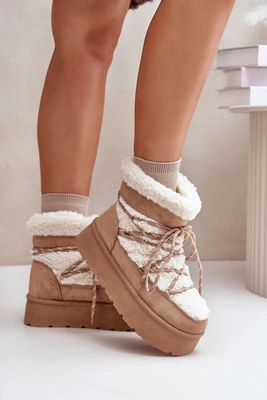 Śniegowce Na Platformie Z Wiązaniem Beżowe Izathiel