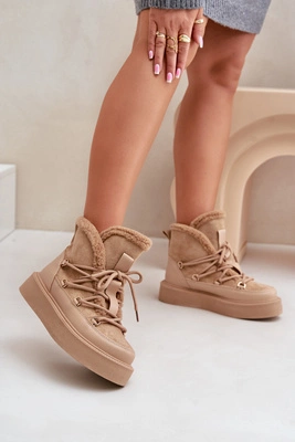 Śniegowce Na Platformie Z Wiązaniem Beżowe Izathiel