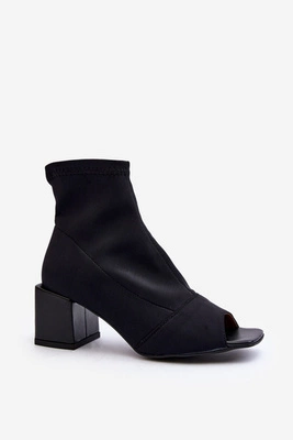 Zazoo 2876 Botki Damskie Na Obcasie Z Odkrytymi Noskami Czarne