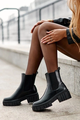 Skórzane Botki Sztyblety Na Grubej Podeszwie Czarne Apetrius