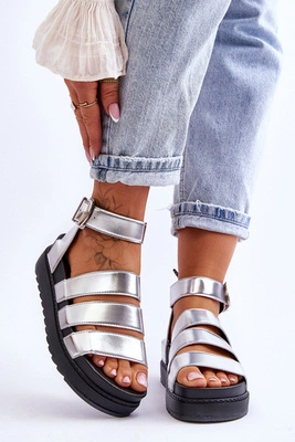 Sandałki Na Masywnej Platformie Srebrne Lisbona