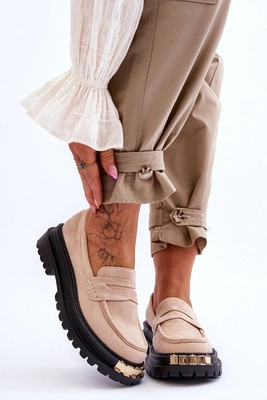 Damskie Mokasyny Na Platformie Z Ozdobami Beżowe Brenda