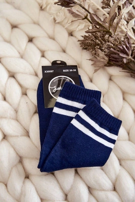 Damskie Bawełniane Skarpety Sportowe Z Paskami Granatowe