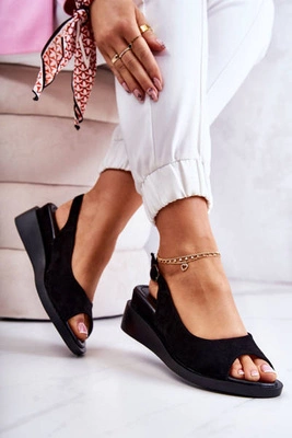Zamszowe Sandały Na Obcasie Czarne Lorisa