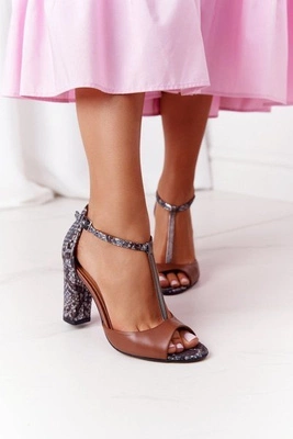 Skórzane Sandały Na Słupku Laura Messi 1916 Brązowe