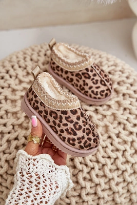 Śniegowce Botki Dziecięce W Panterkę Na Platformie Ocieplane Futerkiem Brązowe Vilabria