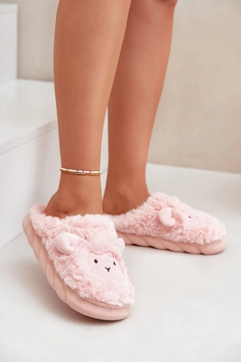 Futrzane Kapcie Damskie Z Motywem Owcy Różowe Phaeia
