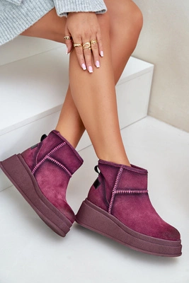 Skórzane Zamszowe Śniegowce Botki Na Platformie I Koturnie Maciejka 06769-23 Bordowe