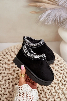 Śniegowce Botki Dziecięce Na Platformie Ocieplane Futerkiem Czarne Vilabria