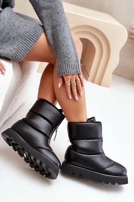 Śniegowce Na Platformie Z Zamkiem Eko Skórzane Czarne Resisia