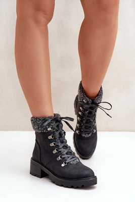 Damskie Trapery Z Kożuszkiem Na Niskim Obcasie Czarne Brenneth
