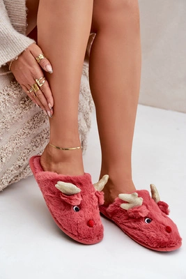 Kapcie Świąteczne Z Motywem Renifera Futrzane Koralowe Asielle