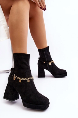 Damskie Botki Na Słupku Z Łańcuszkiem Czarne Tiselo