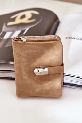 Lakierowany Damski Portfel Portmonetka Ciemnobeżowy Yathika