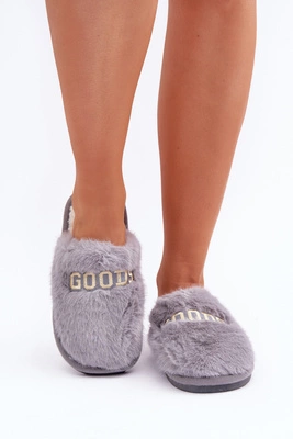 Kapcie Damskie Z Futerkiem I Napisem Szare Kalelia