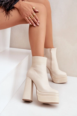 Botki Na Masywnej Platformie I Słupku Ocieplane Jasnobeżowe Selahra