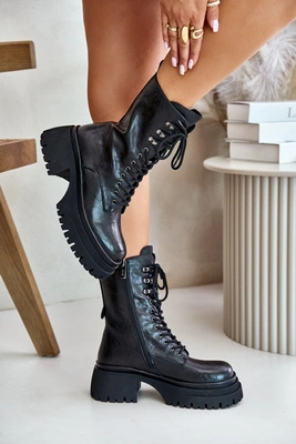 Skórzane Botki Workery Damskie Ocieplane GOE OO2N4121 Czarne