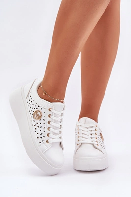 Ażurowe Sneakersy Ze Złotym Detalem Białe Cassildi