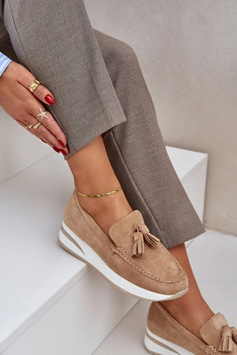 Mokasyny Na Delikatnym Koturnie Eko Zamszowe Beżowe Challavia